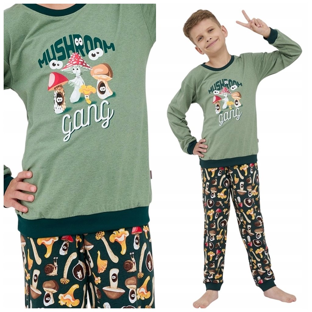 Super pyžamo s dlouhým rukávem oblíbené značky Cornette vzor 976/164 Gang. Pyžamo má na předním díle a na kalhotách obrázky hub. Pyžamové kalhoty jsou v pase do širší gumy, která neškrtí, na tričku i kalhotách jsou praktické manžety. Perfektní zpracování a kvalita. Baleno v krásné krabičče, vhodné jako dárek.
